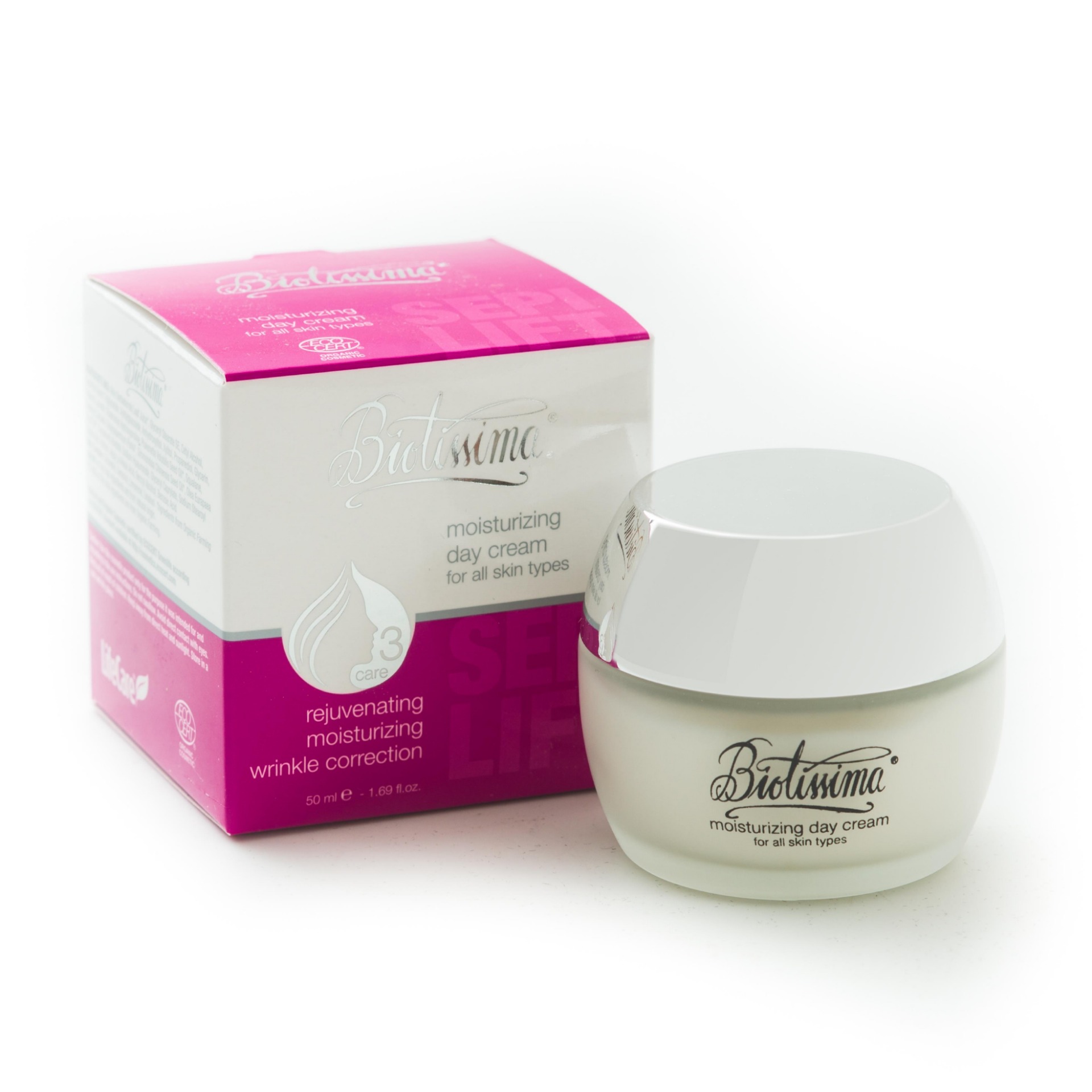 A Biotissima® BIO hidratáló nappali krém innovatív formulája a bőr regenerálásának újraaktiválásán alapul. A bőr visszanyeri a fiatalos és ragyogó kinézetét, miközben egész napon át tartó védelmet kap. Továbbá, a hidratáló nappali krém olyan aktív összetevőkben gazdag, mint az aloe vera, shea vaj, jojoba, olivabogyó, Omega 3-6-9 zsírsavak és Sepilift DPHP, valamint Lipactive Inca inchi, amelyek felfrissítik, hidratálják a bőrt, és csökkentik a ráncokat. A Sepilift DPHP egy olyan ECOCERT minősítéssel rendelkező egyedülálló hatóanyag, amely átalakítja a bőr szerkezetét, hidratálja és élénkíti azt. A ráncokkal szembeni pozitív hatását 3 in vitro teszt is igazolta: - hármas tonizáló hatás a felhámon - hosszantartó hidratáló hatás - hosszantartó ránctalanító hatás.