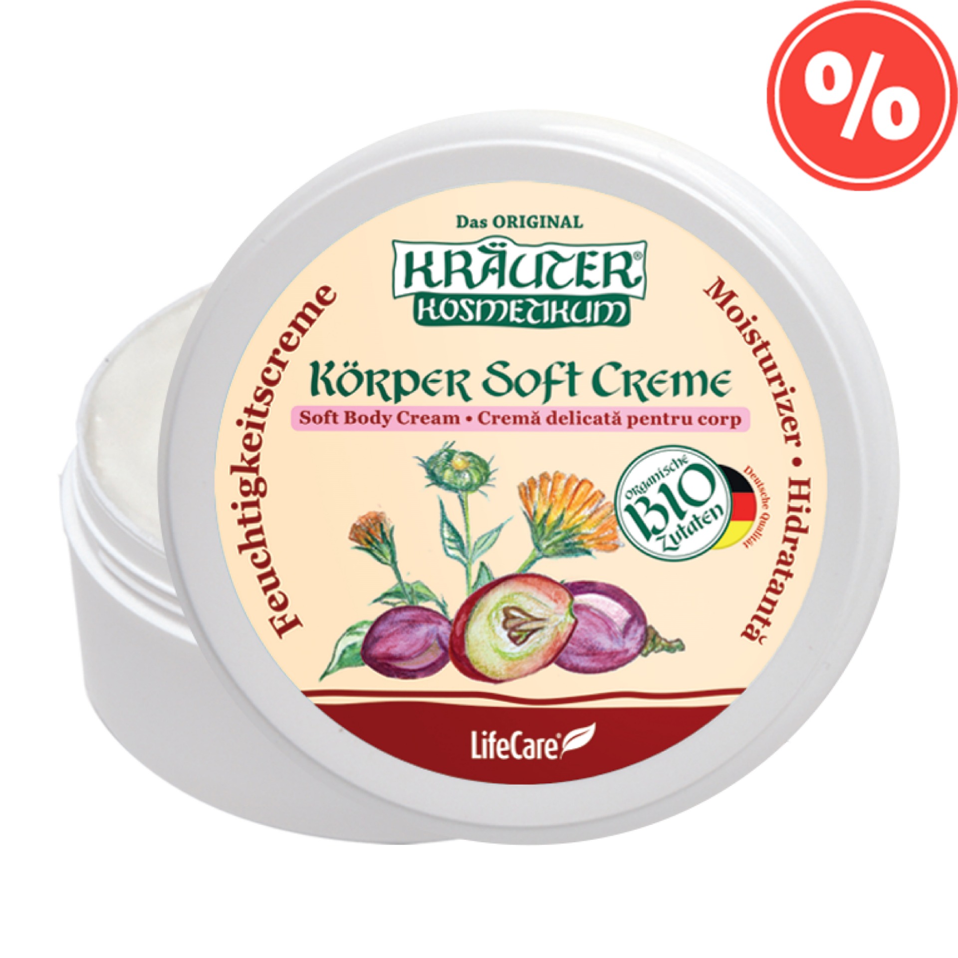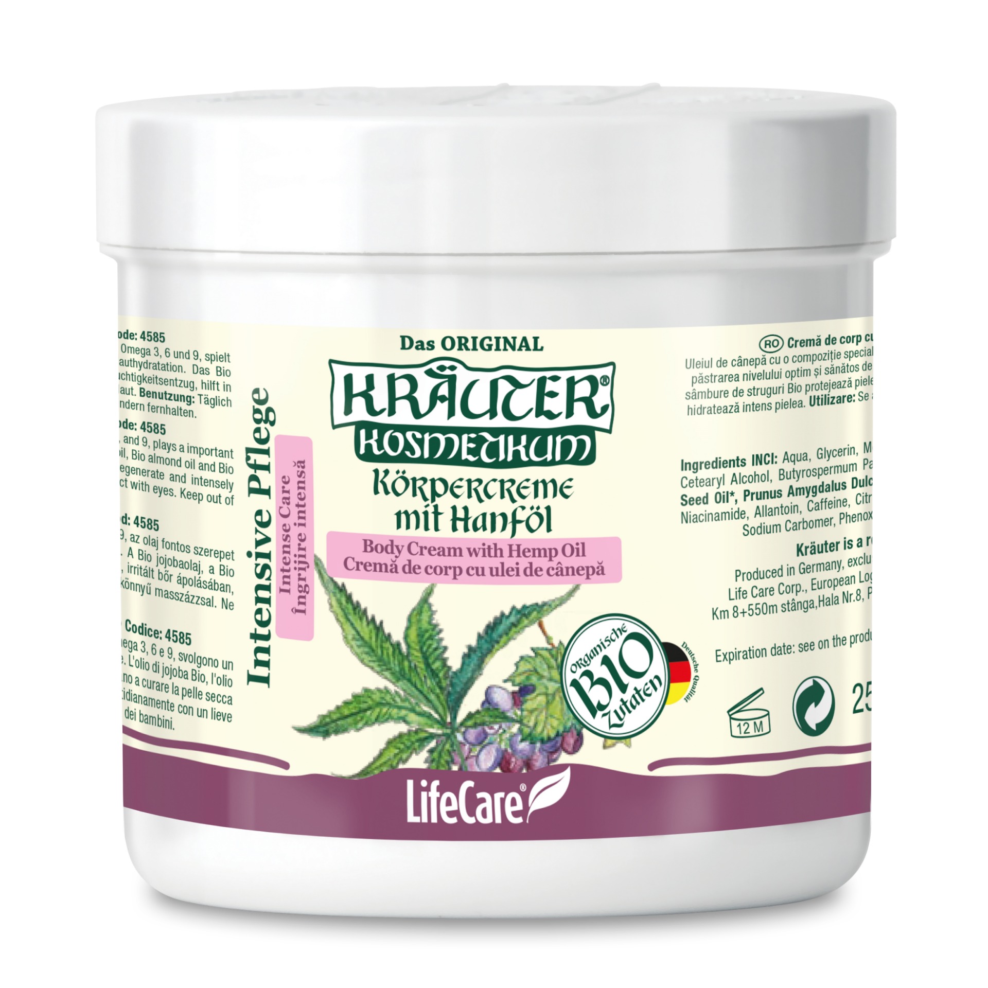A Kräuter® hidratáló krém szőlőmagolajjal és BIO körömvirággal, mélyen hidratál, segít megőrizni a bőr fiatal és ragyogó kinézetét, miközben lassítja az öregedését. A szőlőmagolajnak köszönhetően, a Kräuter® hidratáló krémet könnyen felszívja a bőr, és így hatékonyan hidratálja és adja vissza rugalmasságát. Megakadályozza a ráncok kialakulását, csökkenti a szabad gyökök negatív hatásait és a sejtkárosodást. Biztosítja a sejtek megfelelő oxigénellátását, és tápanyagokkal, vitaminokkal táplálja a szöveteket.